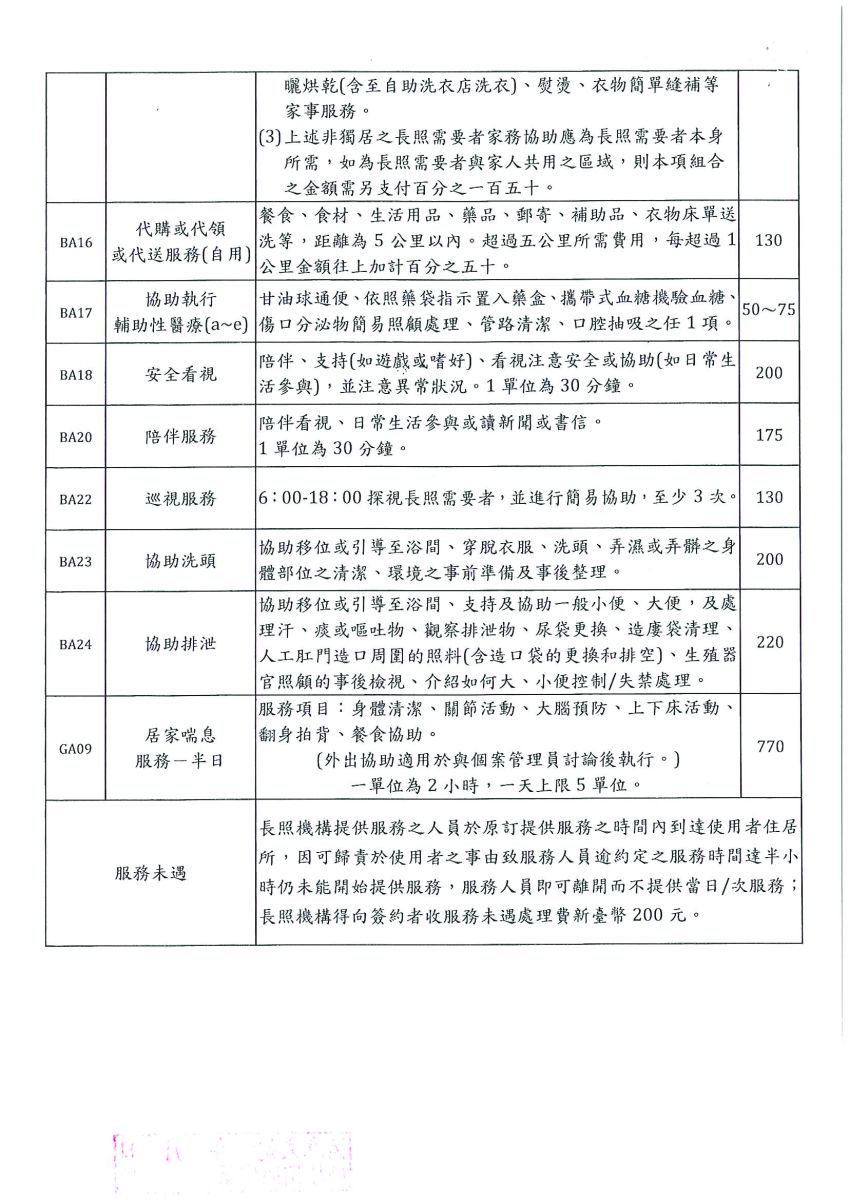 (2)日常照顧服務:陪同或代購生活用品、陪同就醫或復健、文書處理等。